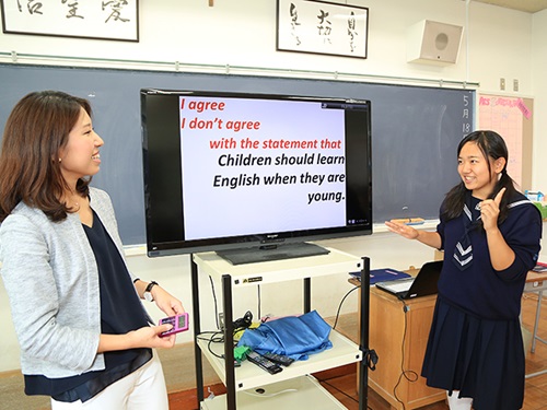 授業では「自分の気持ち、考え、意見を英語で表現する機会」を多く設けています。