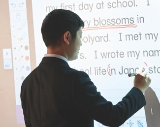 4技能を意識した授業を展開し、放課後にはタブレットを使用してのオンライン英会話学習を取り入れ、英語を本格的に学び始める中学生のうちから丁寧できめ細やかな指導を積み重ね、いずれ迎えるであろう大学入試の突破力を養っています。