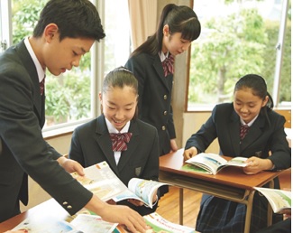 ■ネイティブによる英会話授業⇒中学課程週5コマの授業は、3コマは日本人教員、1コマはネイティブ教員、1コマは日本人教員とネイティブ教員のTeam Teachingにより行っています。