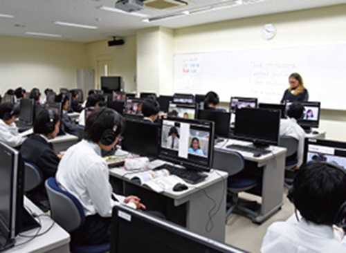 グローバルな社会で活躍できるリーダーを育成するため、ネイティブスピーカーの教員を常駐させるなど、英語教育に力を入れ、「読む・聞く・書く・話す」の4技能をバランスよく習得します。